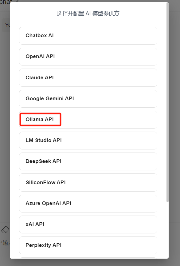 - 填写 API 地址:默认端口(http://localhost:11434)。